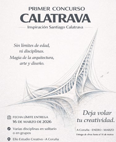 Ello Estudio Creativo abre convocatoria para el Primer Concurso Calatrava, una invitación a crear desde la inspiración en el universo formal, estructural y poético de Santiago Calatrava.