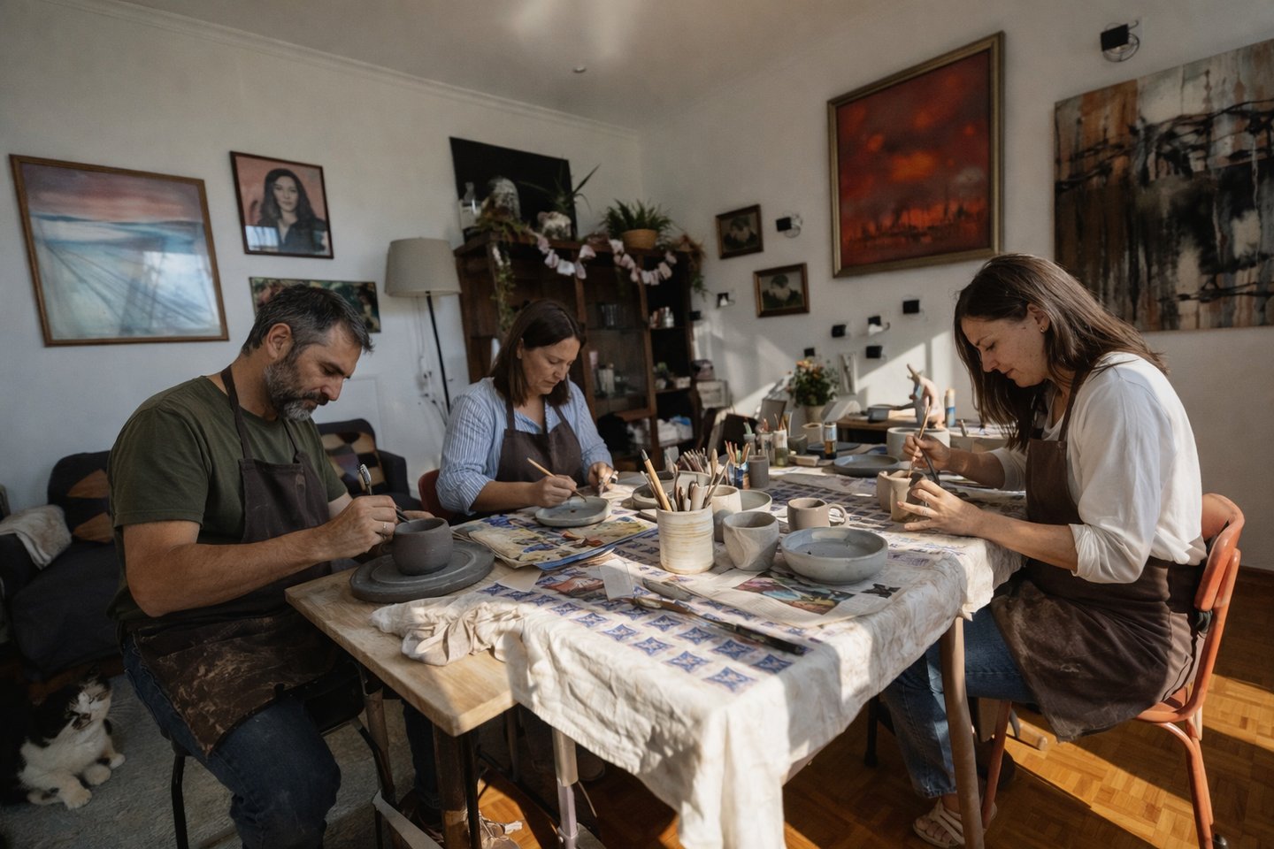 Además, el taller se plantea como un espacio abierto a la comunidad creativa, acogiendo encuentros puntuales, sesiones de trabajo compartido y actividades singulares vinculadas a la cerámica y a otras disciplinas afines.